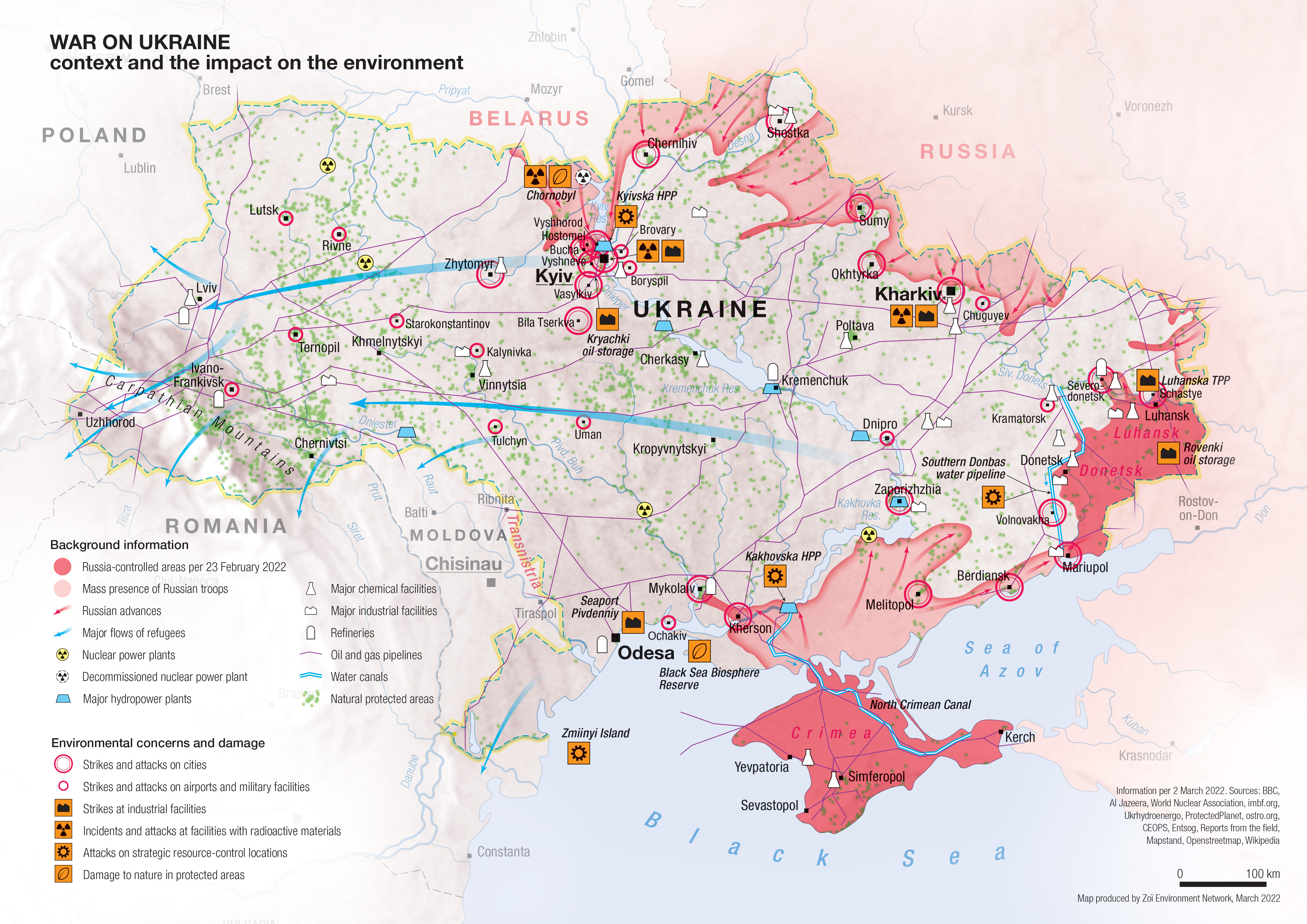 Chernobyl Radiation and Ecological Biosphere Reserve located on this area. Russia’s use of heavy explosive weapons that spreading chemical pollution around and forces local habitants to migrate in other areas that can be dangerous for them.